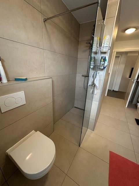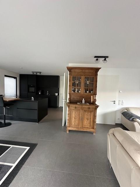 Niveau rez ( 70 m2 ) : hall d'entrée, réserve, cuisine, living, salon, wc + terrasse de 25 m2.
